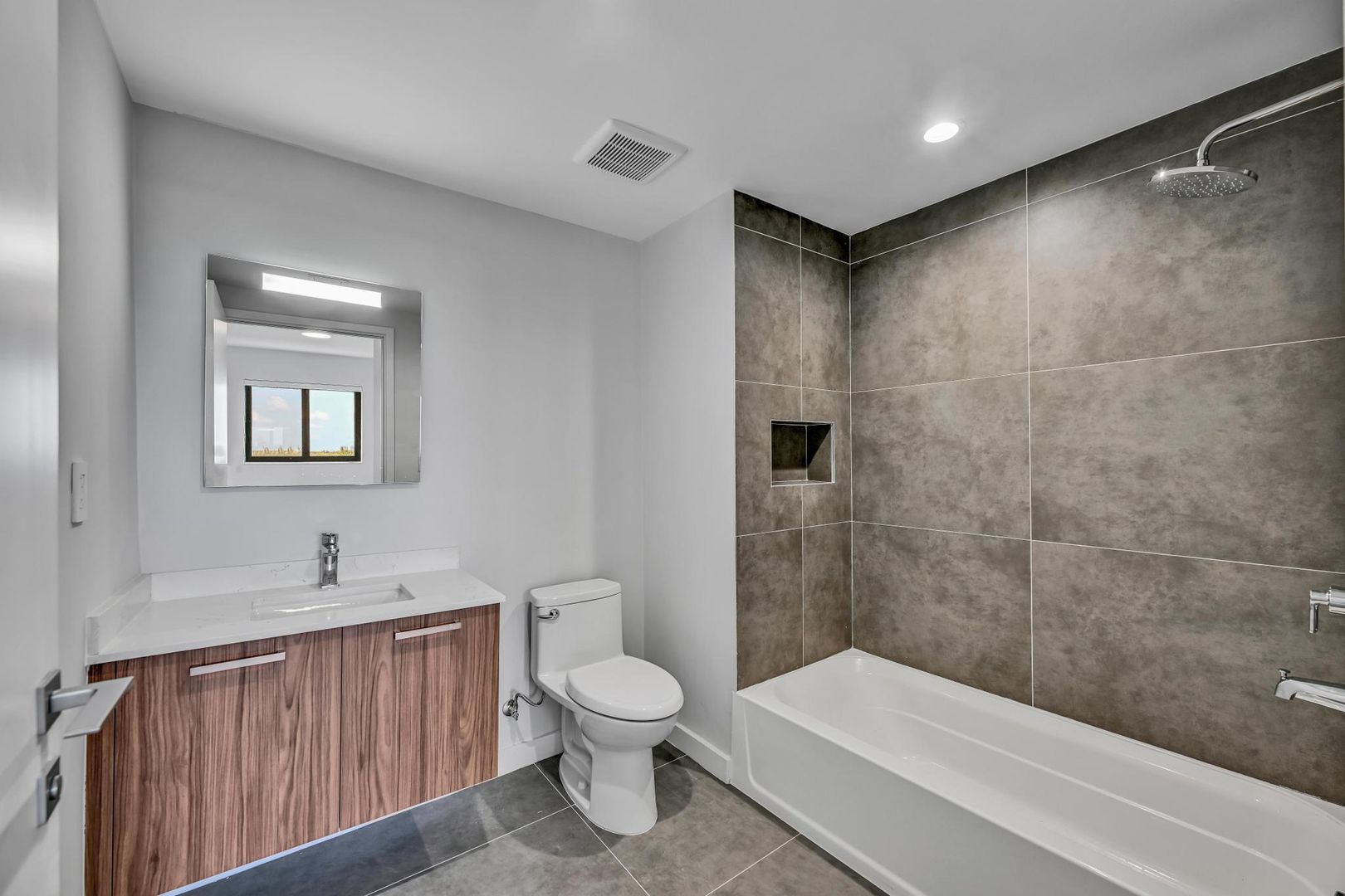 - Sleek quartz countertops, frameless glass showers, and rain showerheads in Bathrooms